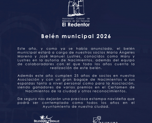¡Bienvenidos/as a la web de la Asociación Cultural de Belenistas de San Fernando «El Redentor»! Este es un lugar donde podrás unirte a nosotros en nuestra pasión por los belenes y seguir de cerca nuestras actividades y proyectos.