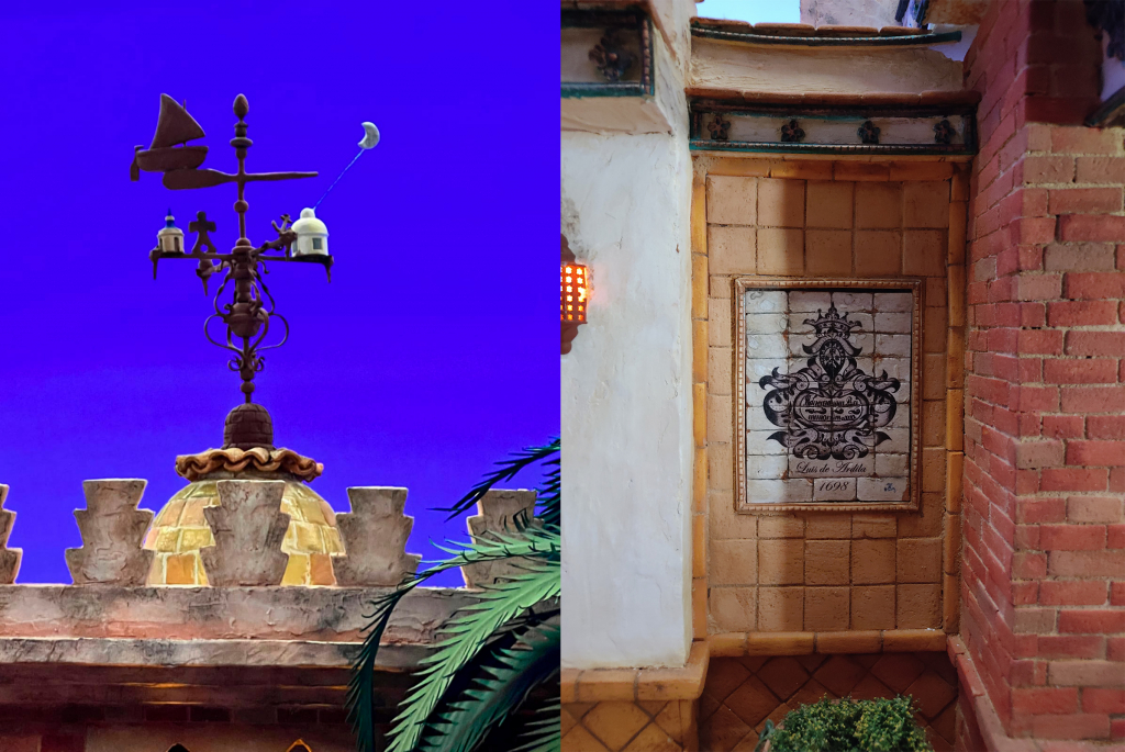Avanzando hacia la izquierda nos encontramos con un patio cuya fachada está inspirada en la de la antigua Caseta Municipal de la, entonces conocida como, Velá del Carmen que se instalaba en el parque Almirante Laulhé, como lleva ocurriendo estos últimos años. Además, las celosías de los arcos tienen un patrón de escudos carmelitanos.